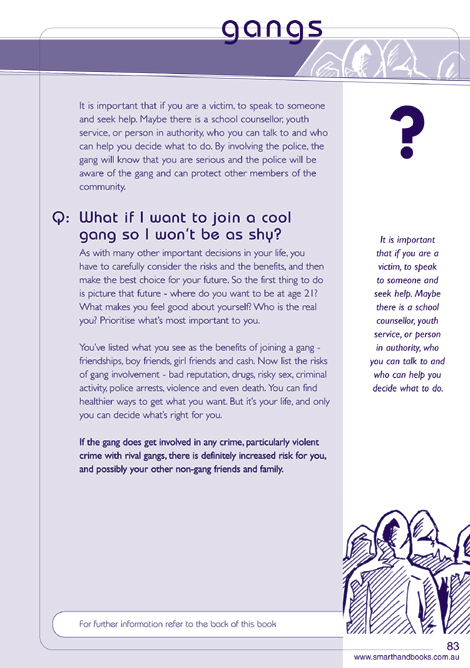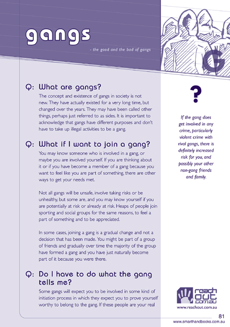 Not all gangs will be unsafe, involve taking risks or be unhealthy, but some are, and you may know yourself if you are potentially at risk or already at risk.