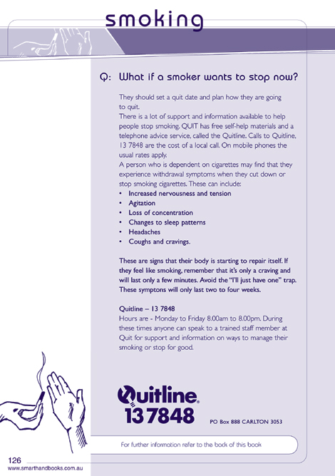 Information on how to stop smoking • Call QUIT - 13 7848