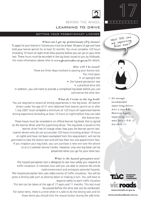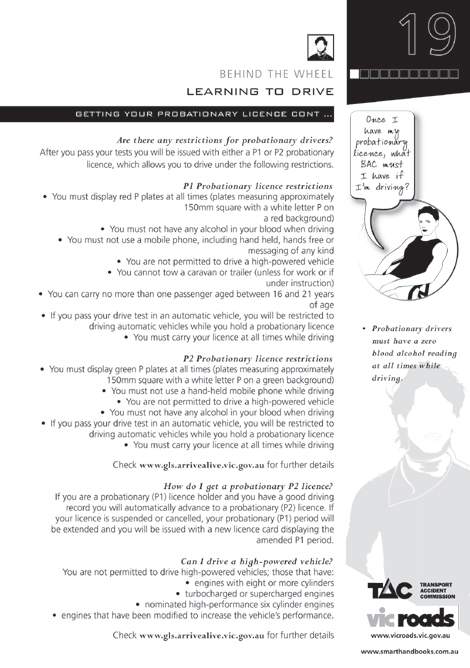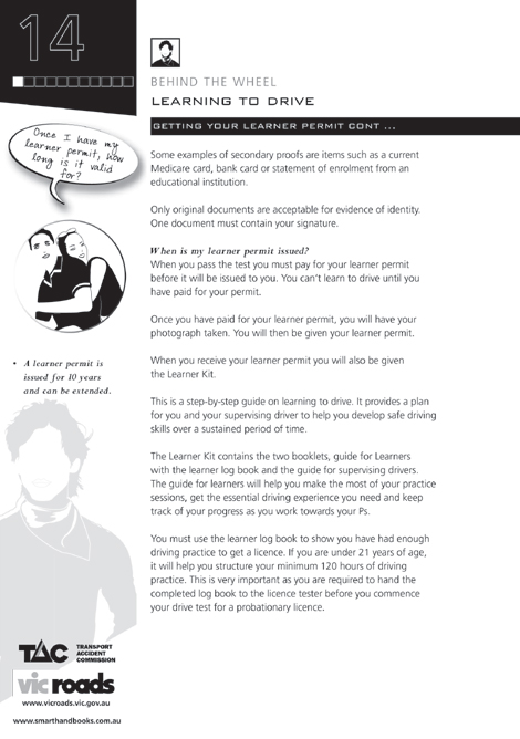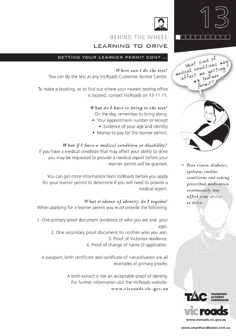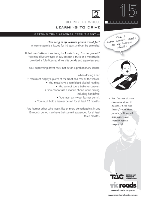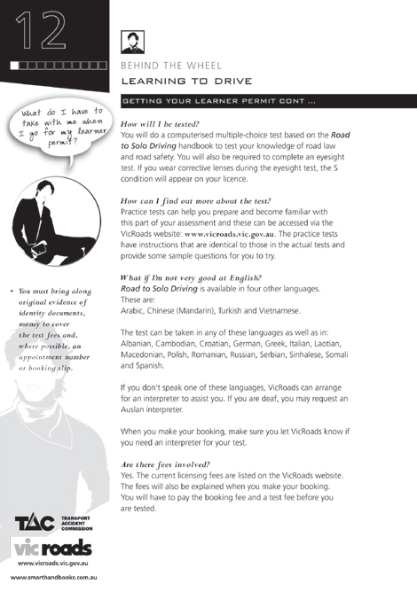 Read a copy of the Road to Solo Driving then book your learner permit test with VicRoads. -