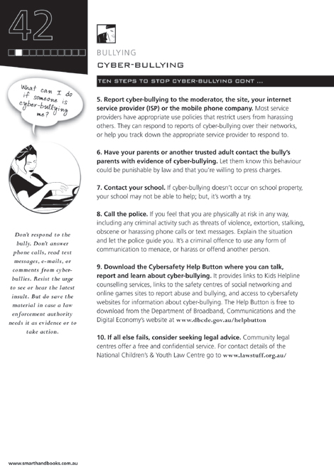 Don't respond to the bully. Don't answer phone calls, read text messages, email, or comments from cyber-bullies. Resist the urge to see or hear the latest insult. But do save the material in case a law enforcement authority needs it as evidence or to take action. -