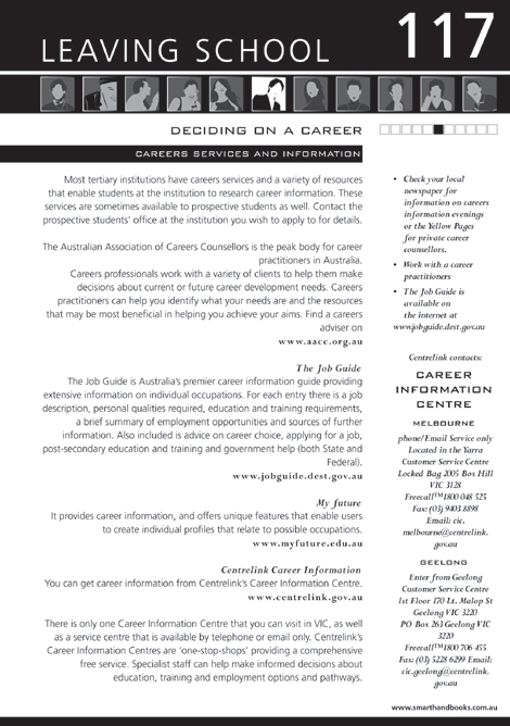 The Job Guide is available on the internet at www.jobguide.dest.gov.au
