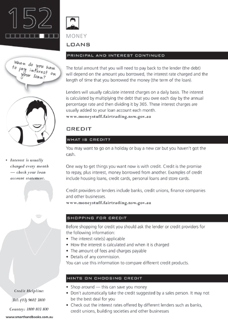 Financial counsellors can advise you on the kind of loan best suited to your repayment ability and the time you have to pay it back. Ask for advice on fixed and variable rates of interest and consolidation loans.